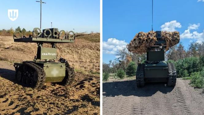 У Збройних силах України введено в експлуатацію новий мобільний вогнеметний ударний комплекс KRAMPUS, який призначений для виконання штурмових та оборонних завдань. Цей комплекс має компактні розміри та вагу і може бути перевезений на пікапі, мікроавтобусі чи причепі. Він оснащений електричними двигунами та гусеничним шасі, що дозволяє йому легко пересуватися по важкому місцевості. KRAMPUS також обладнаний бойовим модулем з вогнеметами, які призначені для знищення ворожих сил і техніки. Загалом, українські Збройні сили вже використовують понад 80 роботизованих комплексів, більшість з яких вироблено на вітчизняних підприємствах. Крім того, вони також використовують наземні дрони з бойовими модулями для ведення бойових дій.